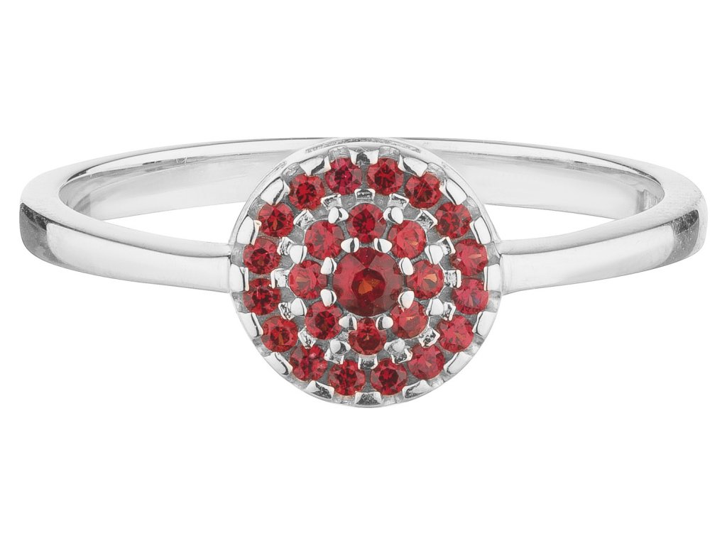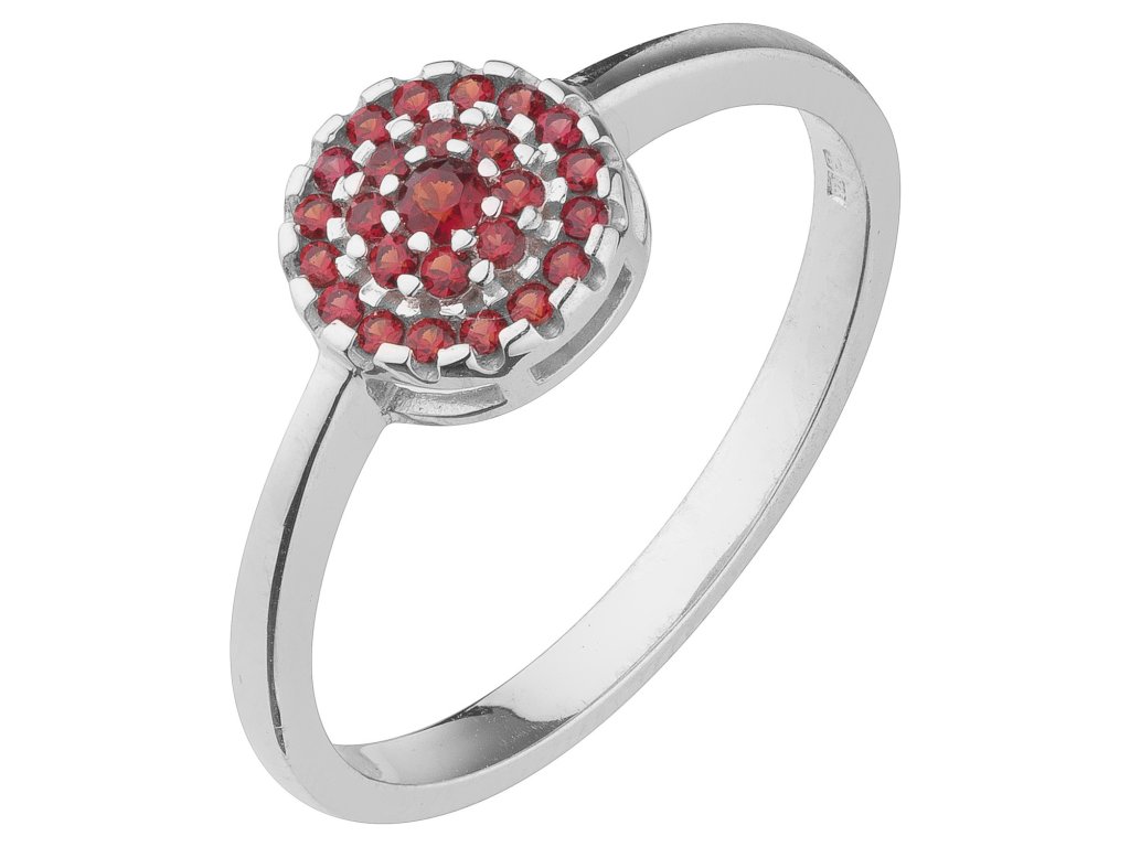 Tento elegantní prsten je vyroben ze stříbra (Ag 925/1000) a zušlechtěn rhodiováním. Je zdoben českým granátem. Prsten má tvar kruh o velikosti 8x8 mm.