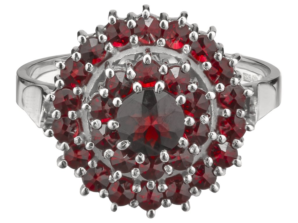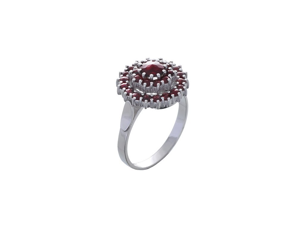 Silver ring with czech garnet, rhodium plated - circle