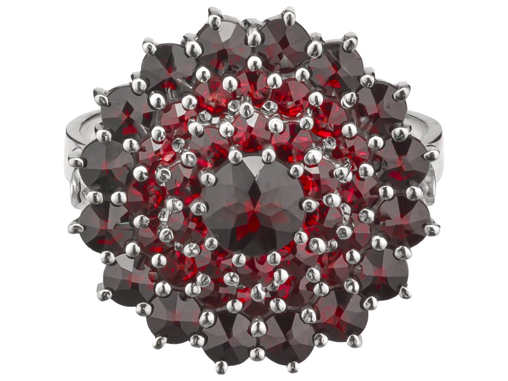 Silver ring with czech garnet, rhodium plated - flower