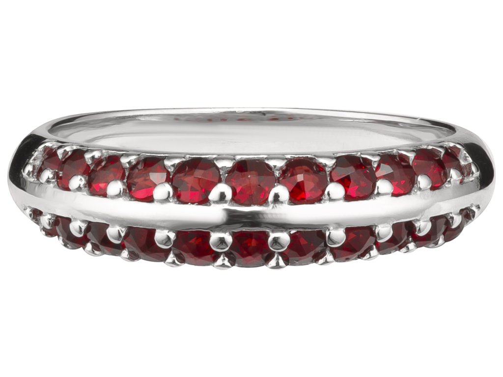Silver ring with czech garnet, rhodium plated - line