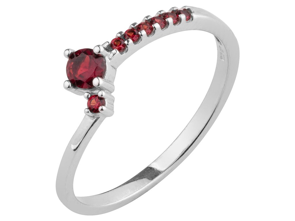 Tento elegantní prsten je vyroben ze stříbra (Ag 925/1000) a zušlechtěn rhodiováním. Je zdoben českým granátem. Prsten má motiv linka o velikosti 16x6 mm.