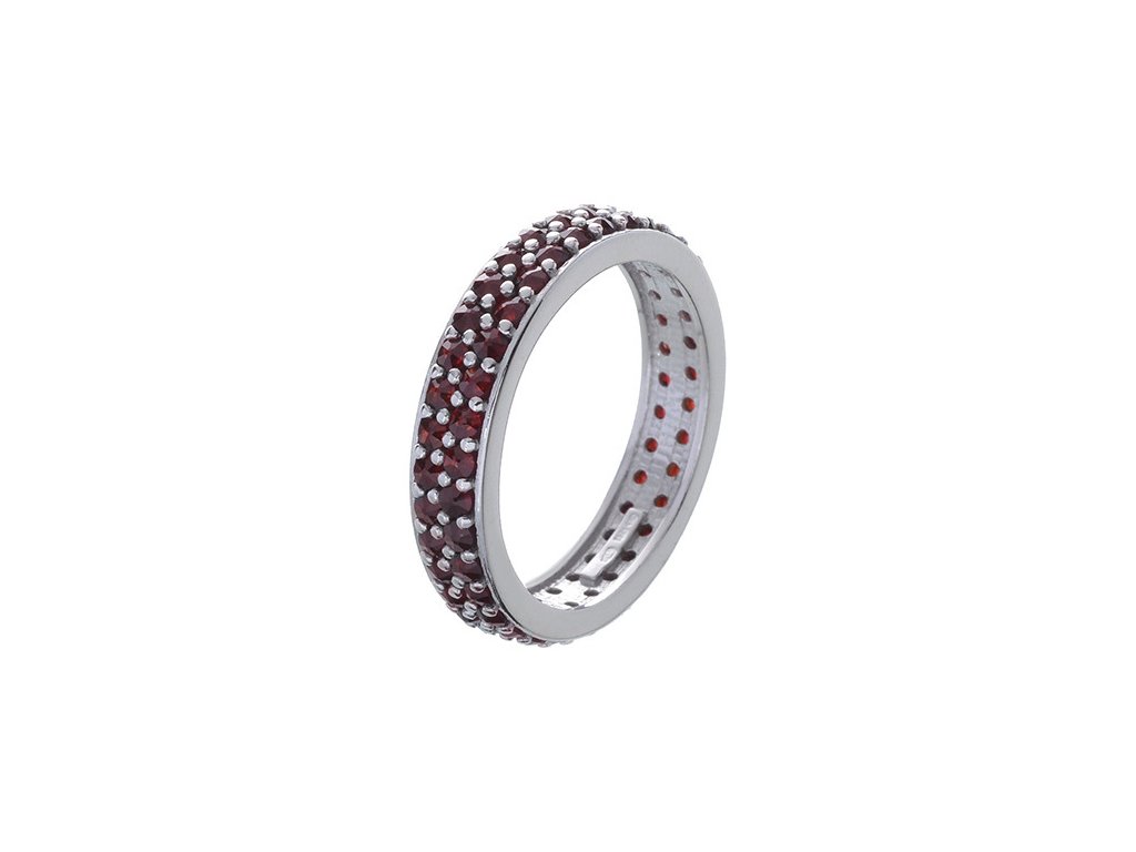 Silver ring with czech garnet, rhodium plated - line