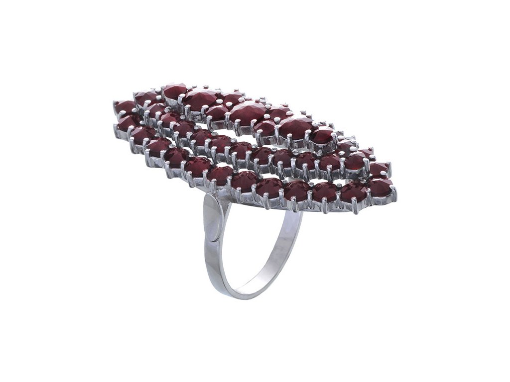 Silver ring with czech garnet, rhodium plated - oval
