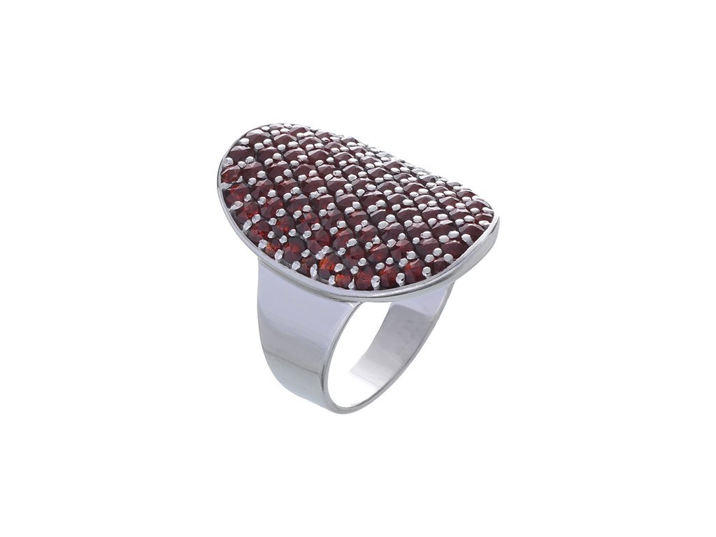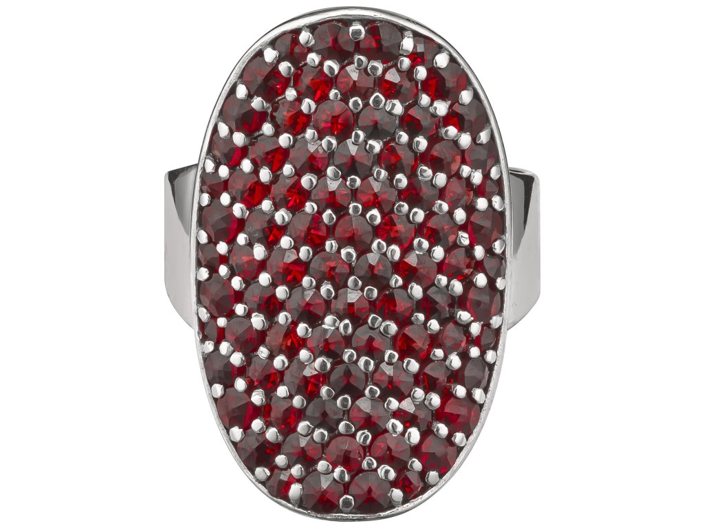 Silver ring with czech garnet, rhodium plated - oval