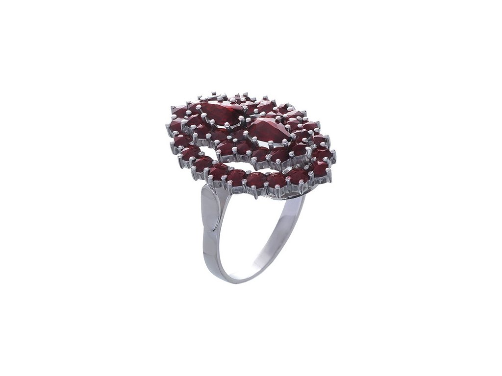 Silver ring with czech garnet, rhodium plated - oval