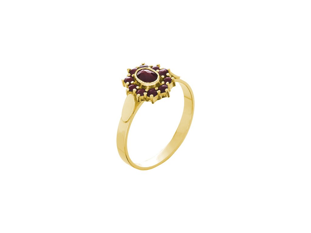 Silver ring with czech garnet, gold plated - oval