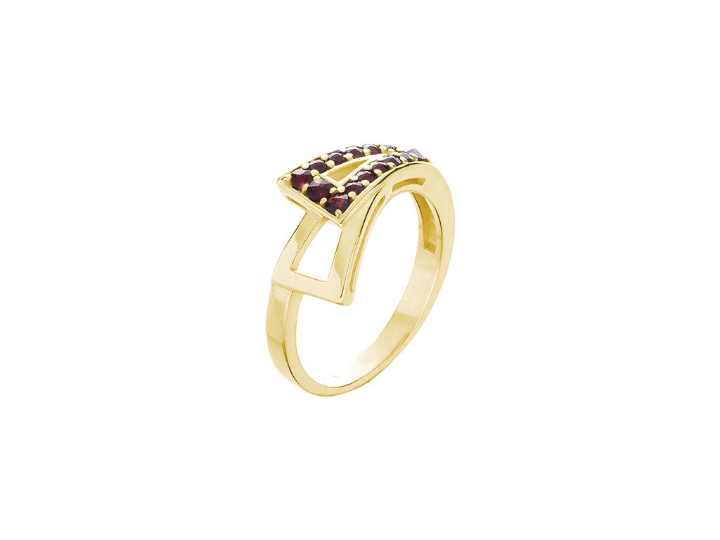 Silver ring with czech garnet, gold plated - triangle
