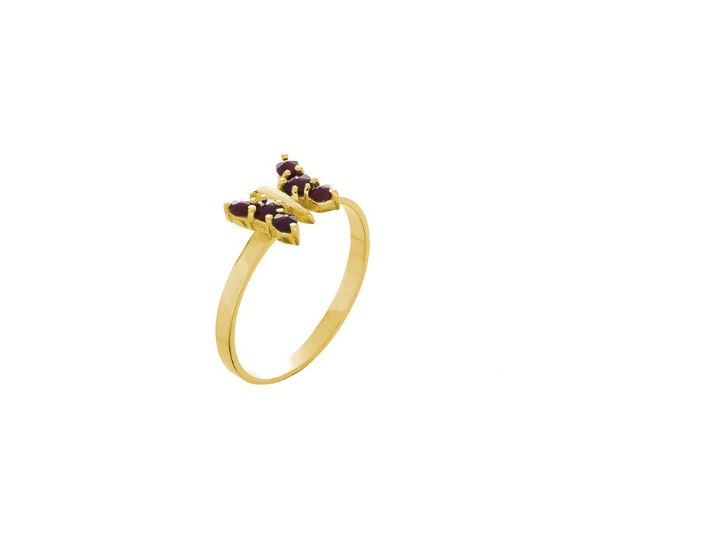 Silver ring with czech garnet, gold plated, animal - butterfly