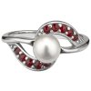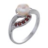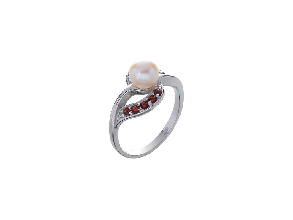 Silver ring with czech garnet and pearl, rhodium plated - wave
