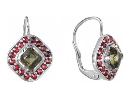 Silver ring with czech garnet and moldavite, rhodium plated - square