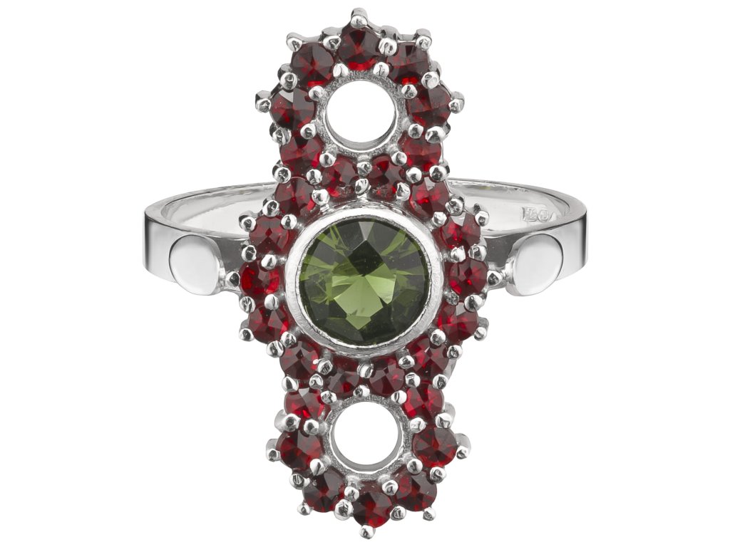Silver ring with czech garnet and moldavite, rhodium plated - circle