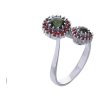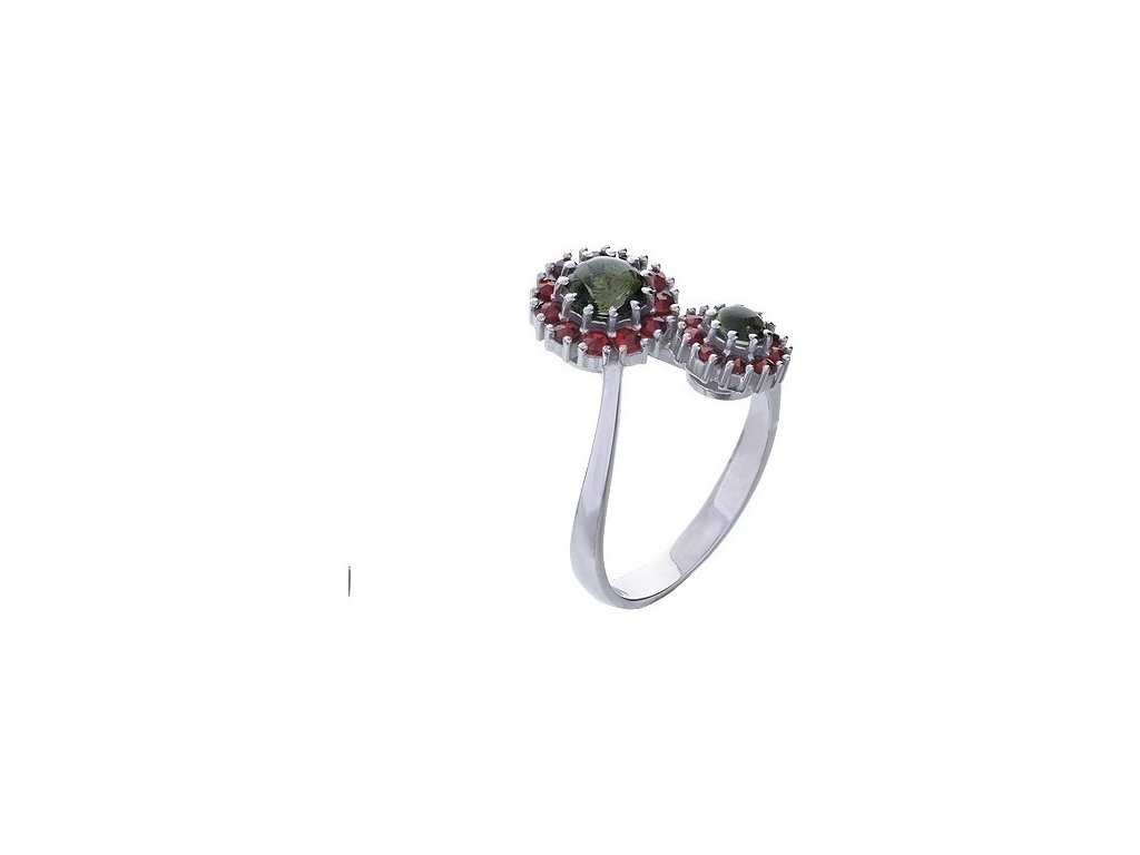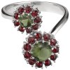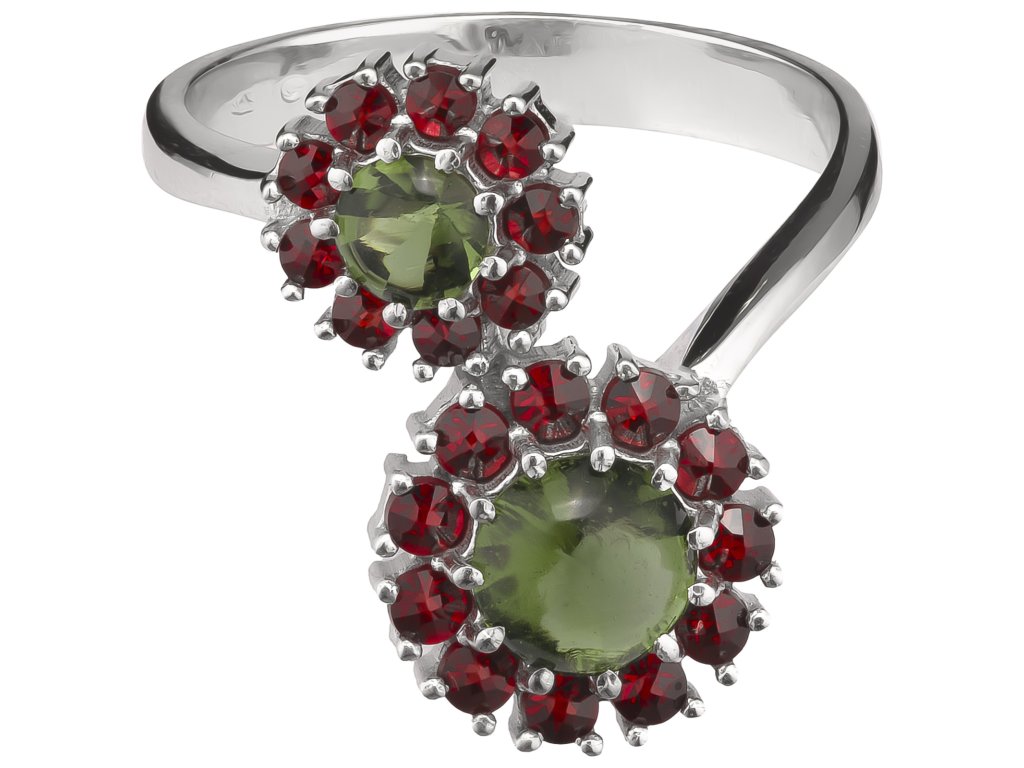 Silver ring with czech garnet and moldavite, rhodium plated - flower