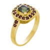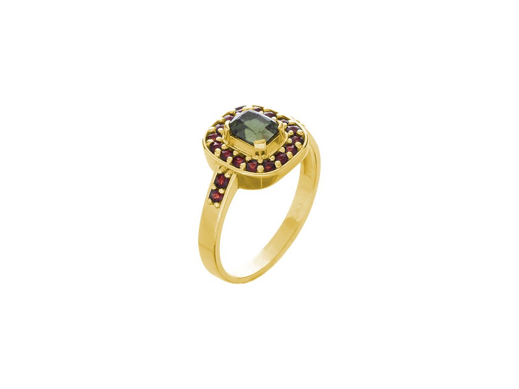 Silver ring with czech garnet and moldavite, gold plated - rectangle