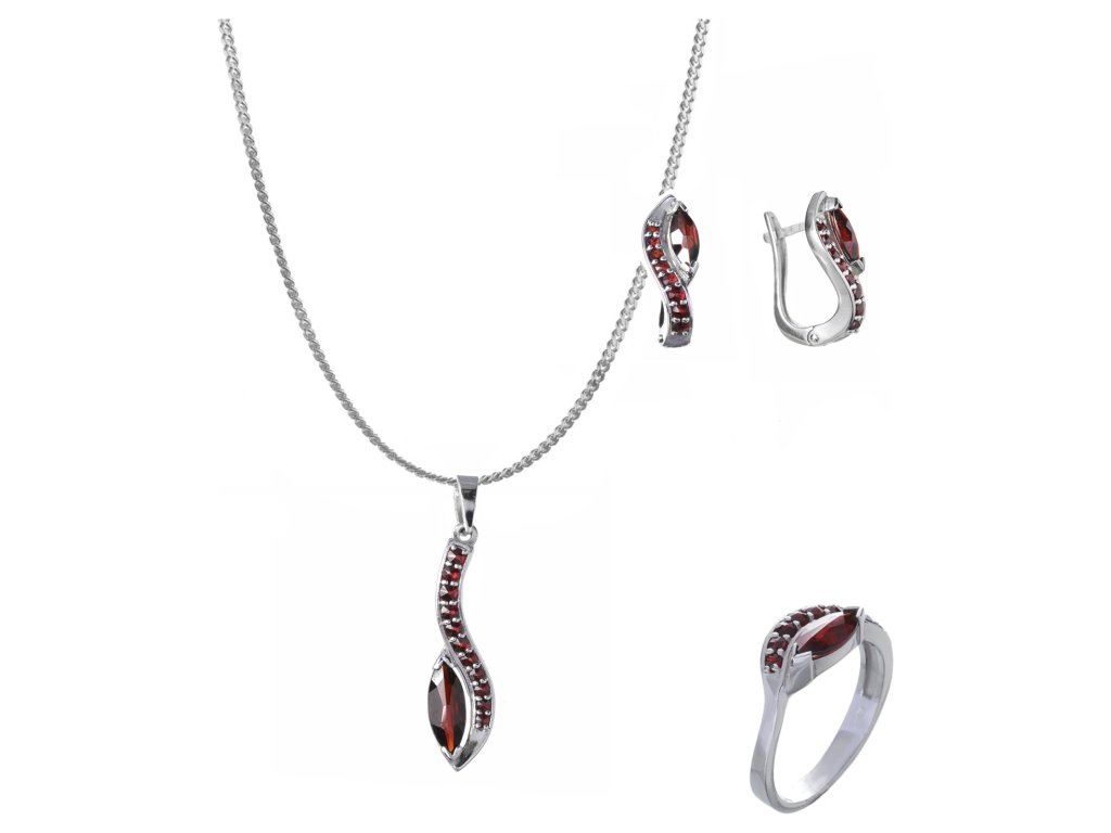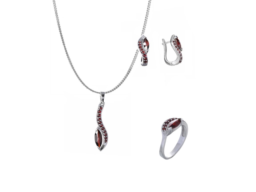 Set of silver jewellery 1228 with czech garnet, rhodium plated - wave