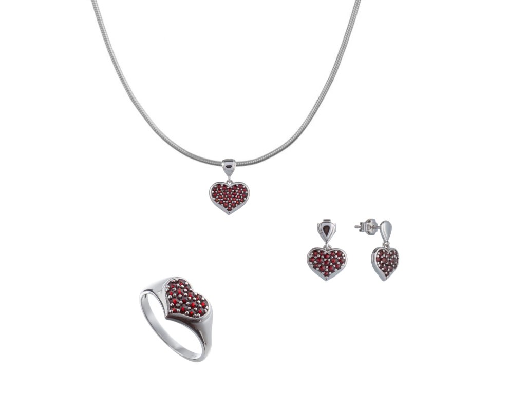 Set of silver jewellery 1390 with czech garnet, rhodium plated - heart