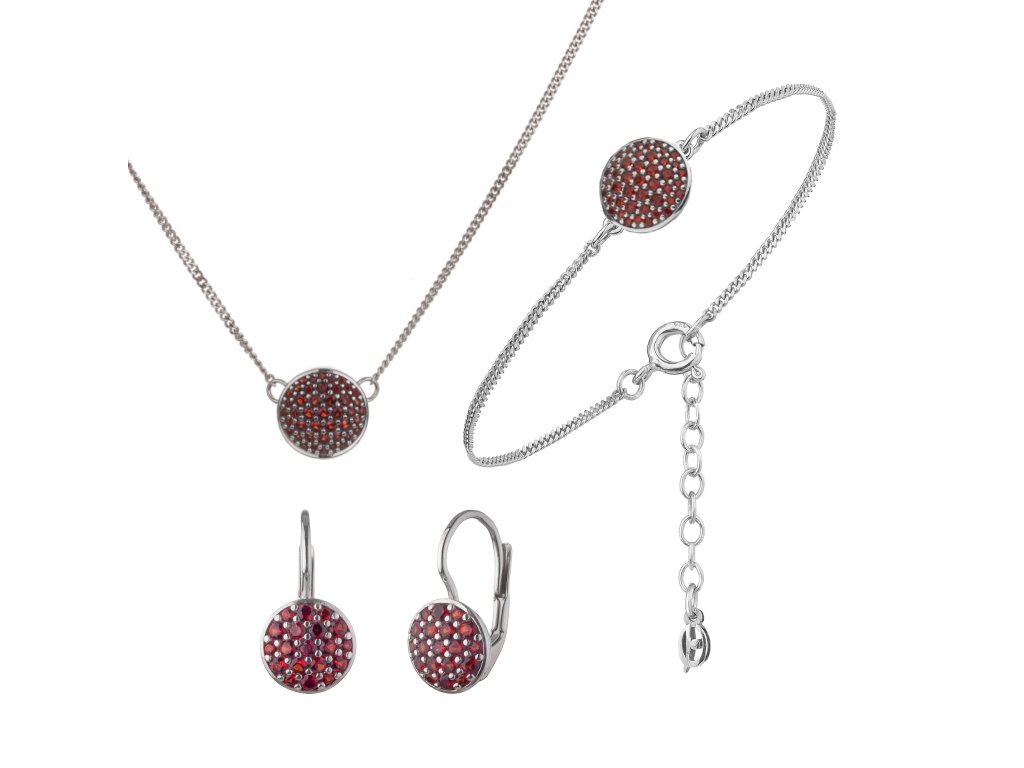 Set of silver jewellery 1427 with czech garnet, rhodium plated - circle