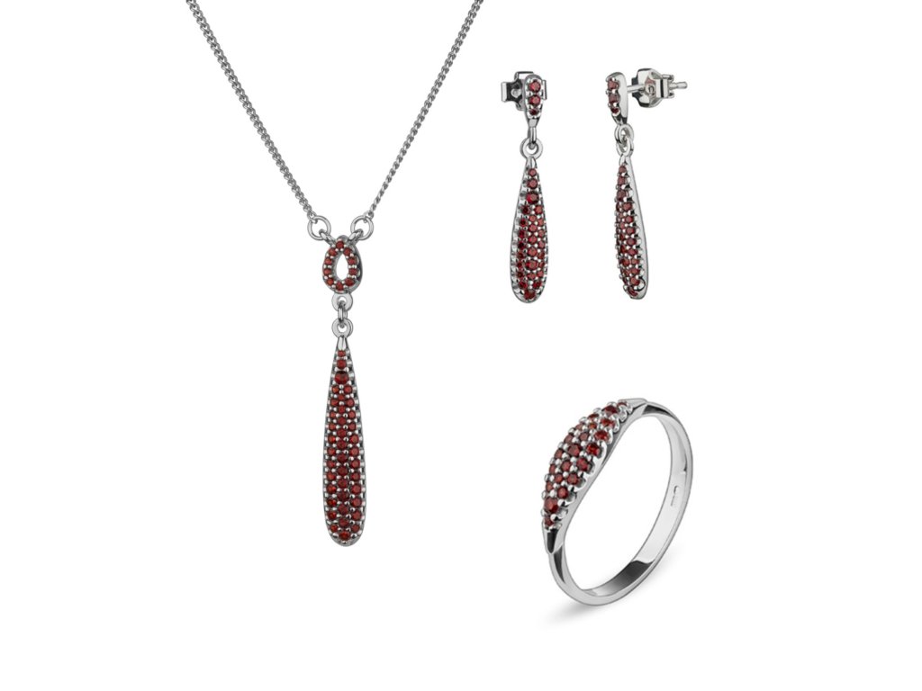 Set of silver jewellery 1432 with czech garnet, rhodium plated - drop