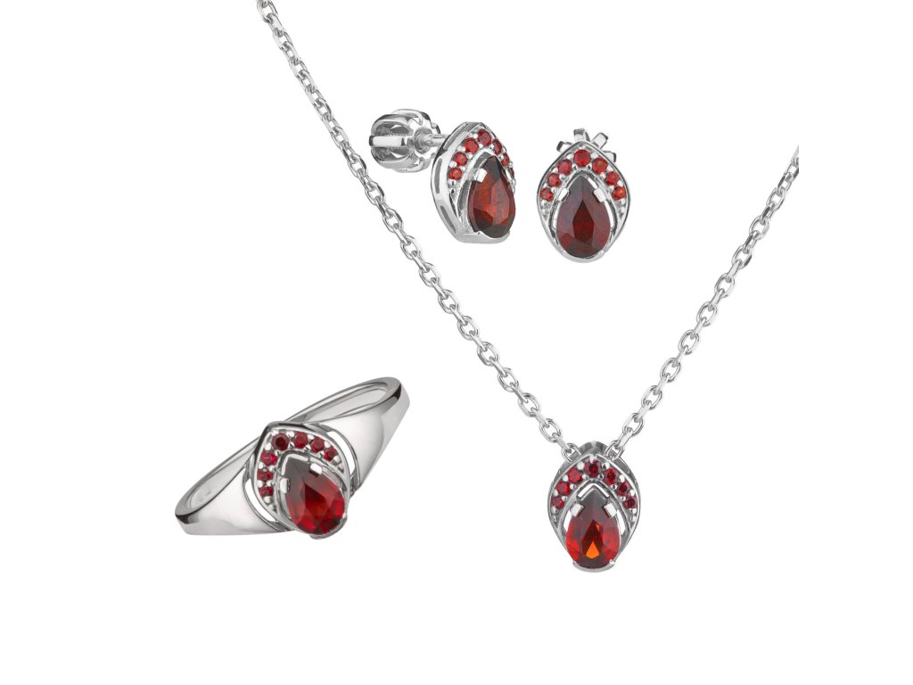 Set of silver jewellery 1445 with czech garnet, rhodium plated - drop