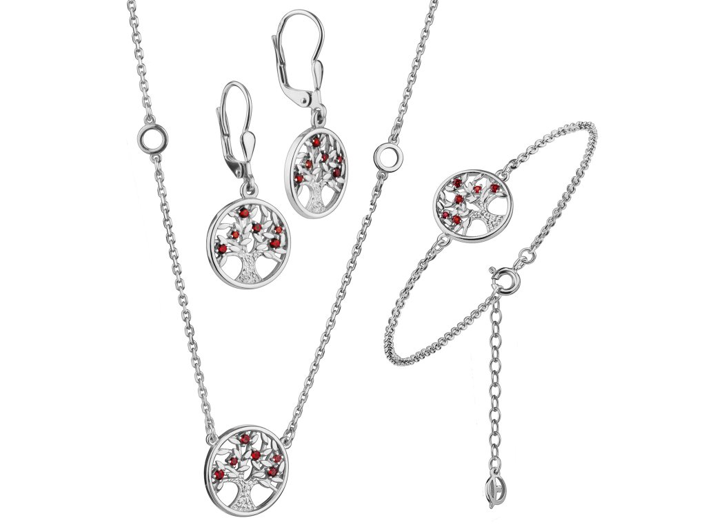 Set of silver jewellery 1467 with czech garnet, rhodium plated - tree of life