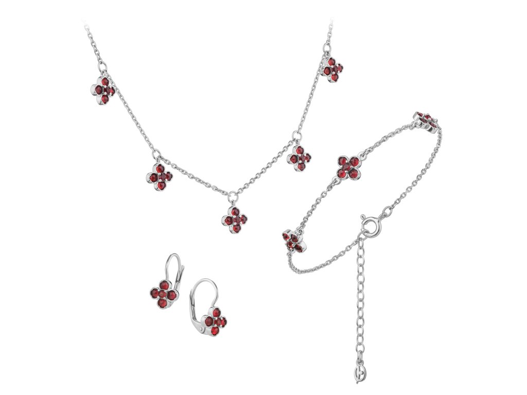 Set of silver jewellery 1471 with czech garnet, rhodium plated - flower