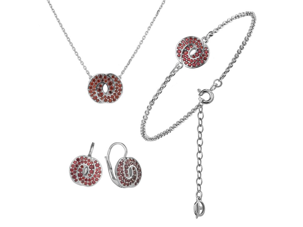 Set of silver jewellery 1473 with czech garnet, rhodium plated - knot
