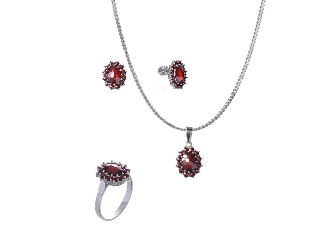 Set of silver jewellery 495 with czech garnet, rhodium plated - oval
