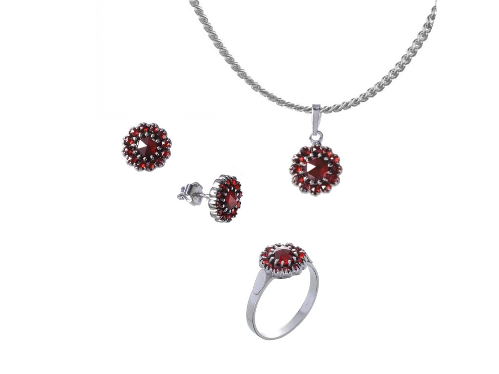 Set of silver jewellery 548 with czech garnet, rhodium plated - flower