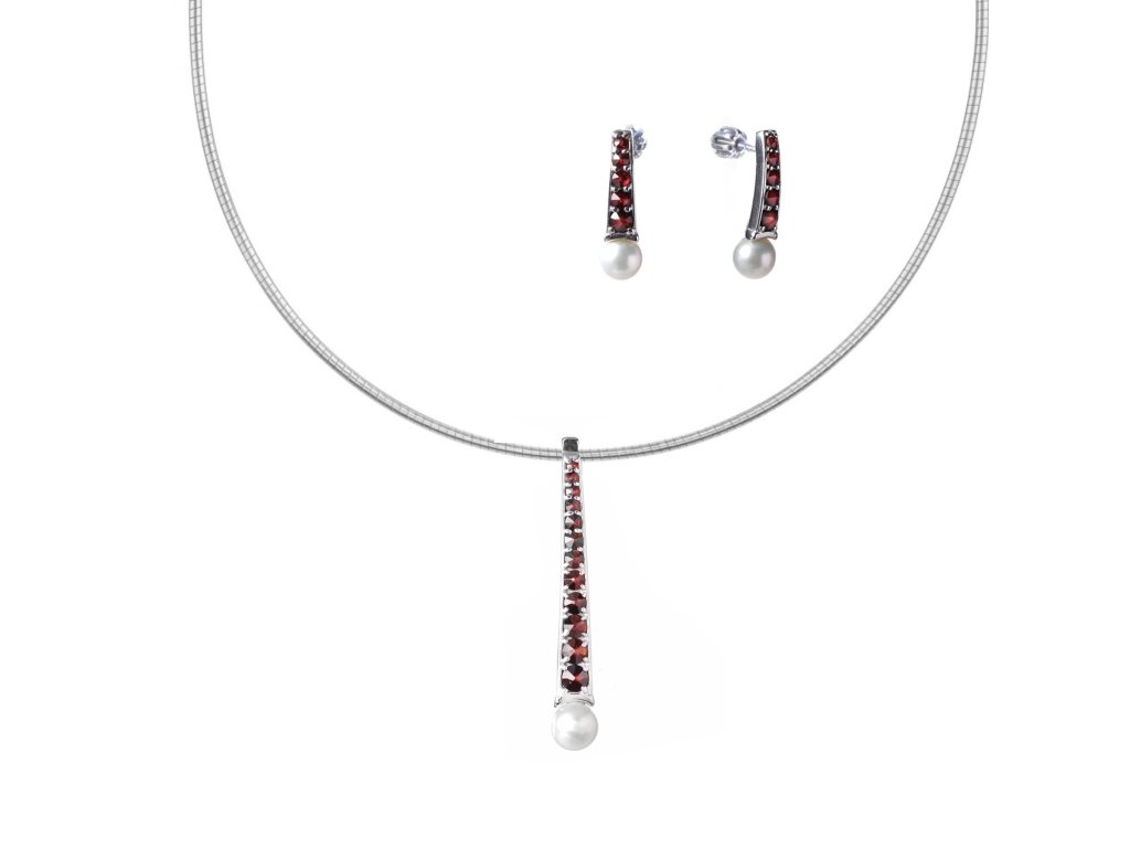 Set of silver jewellery 866 with czech garnet and pearl, rhodium plated - line