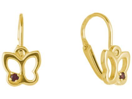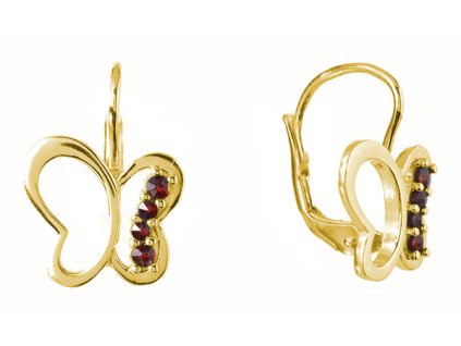 Silver earrings with czech garnet, gold plated, animal - butterfly