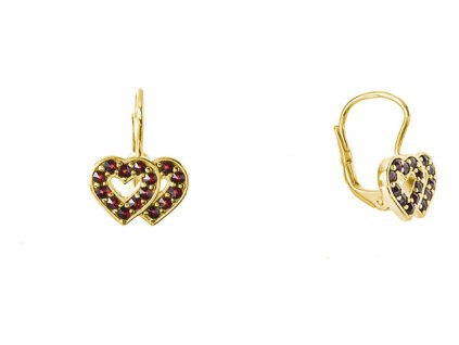 Silver earrings with czech garnet, gold plated - heart