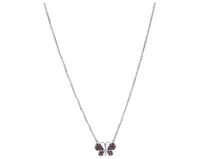 Silver necklace with czech garnet, rhodium plated, animal - butterfly
