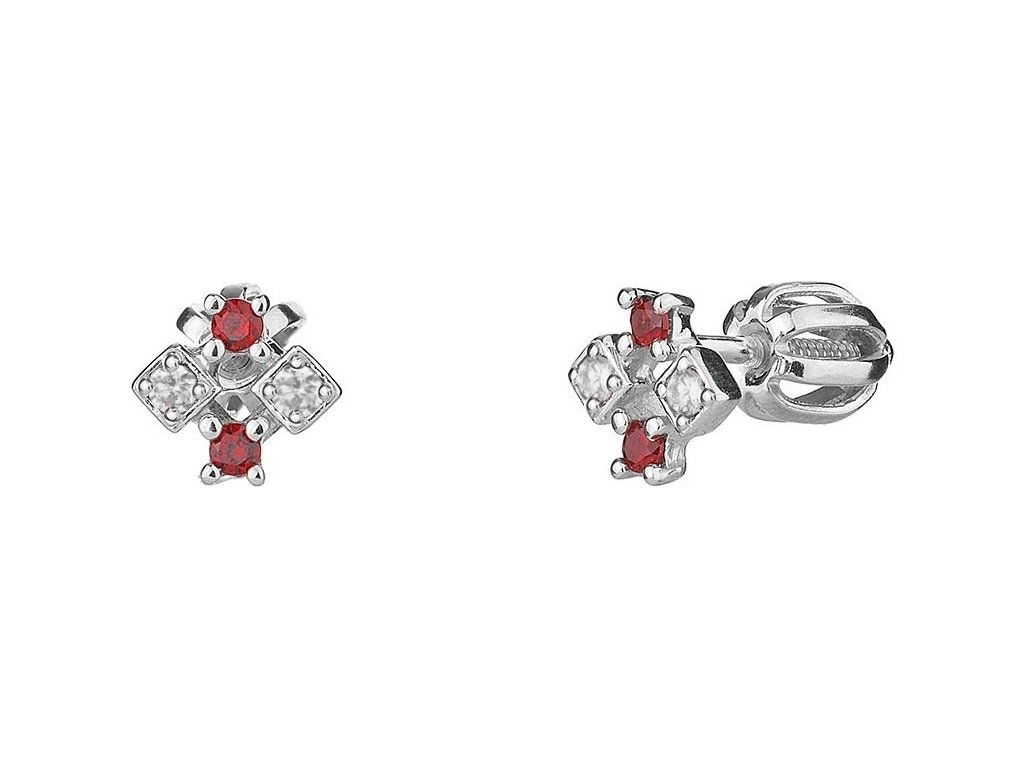 Zlaté náušnice z bílého zlata s českým granátem a diamantem - čtverec