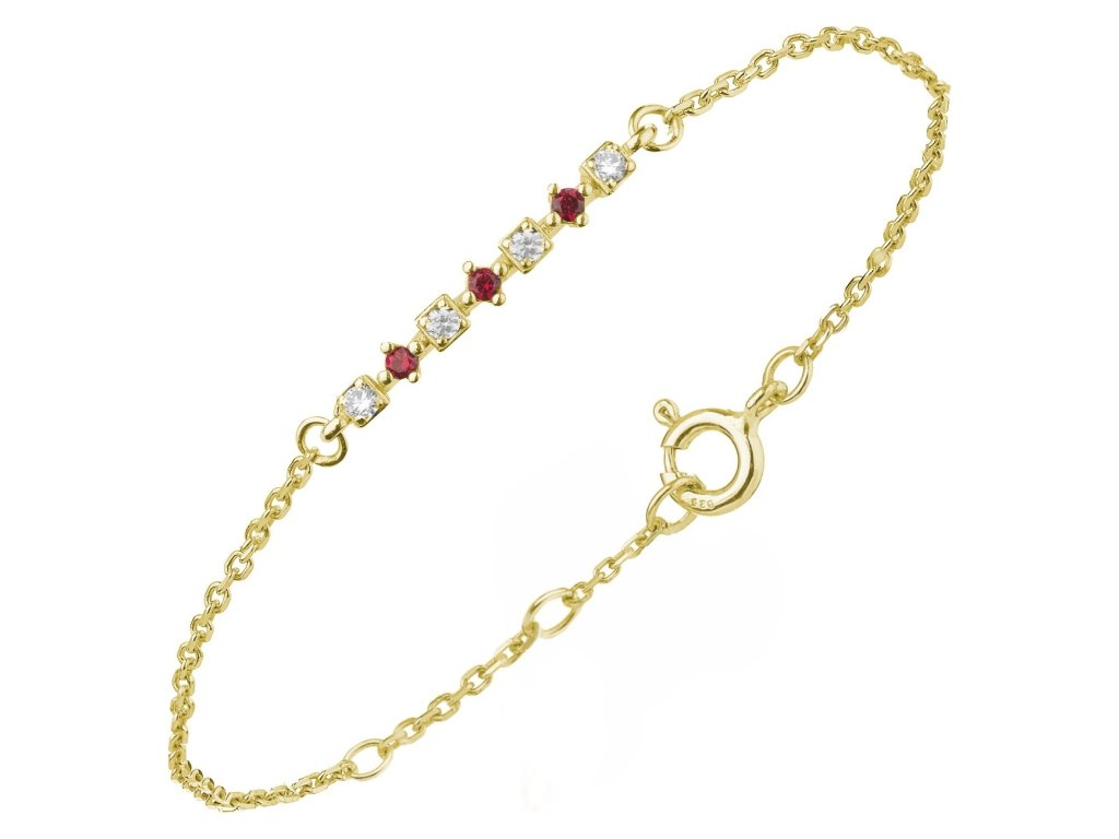 Tento stylový náramek je vyroben ze zlata (Au 585/1000). Je zdoben českým granátem a diamantem. Náramek má motiv linka o velikosti 21x3 mm.