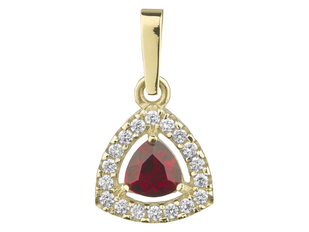 Gold pendant with czech garnet and diamond - triangle