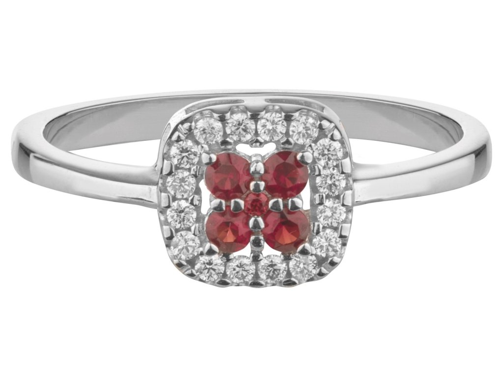 White gold ring with czech garnet and diamond - square