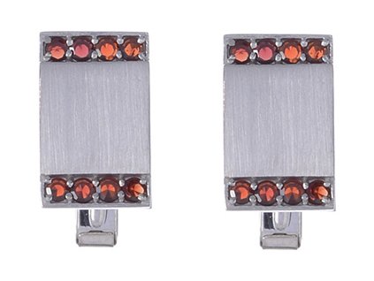 Stříbrné manžetové knoflíky s českým granátem, rhodiované - obdélník