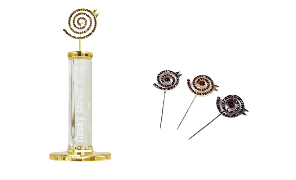 - Stříbrné jehlice ve tvaru spirály – jsou určeny vítězům jednotlivých kategorií podle umístění – zlacené, stříbrné a rutheniované.