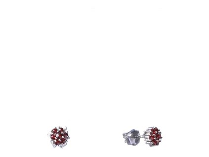 Stříbrné náušnice s českým granátem, rhodiované - uzel