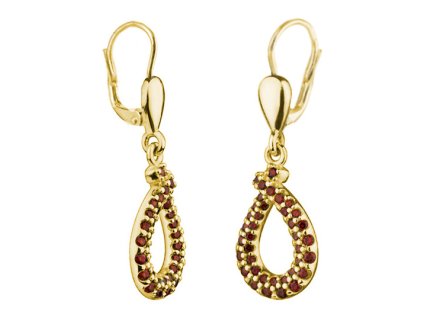 Zlaté náušnice s českým granátem a diamantem  - čtverec