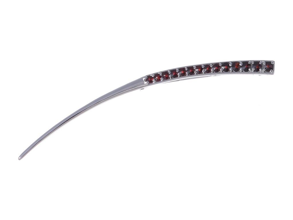 Silver brooch with czech garnet, rhodium plated - line