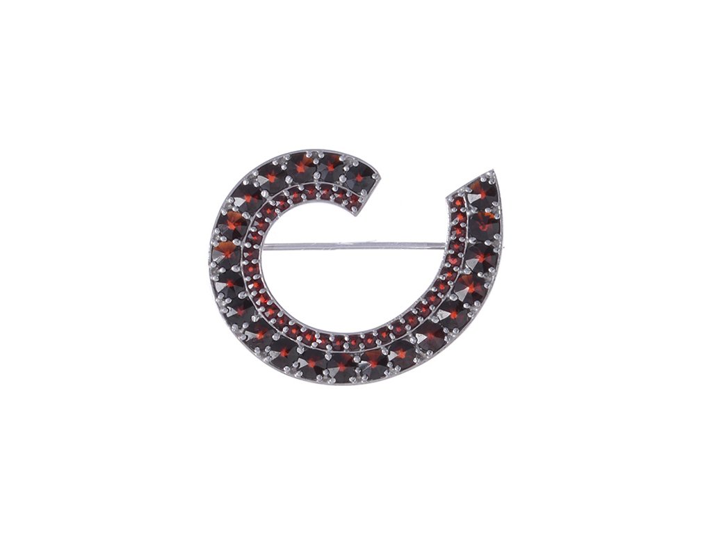 Stříbrná brož s českým granátem, rhodiovaná - spirála