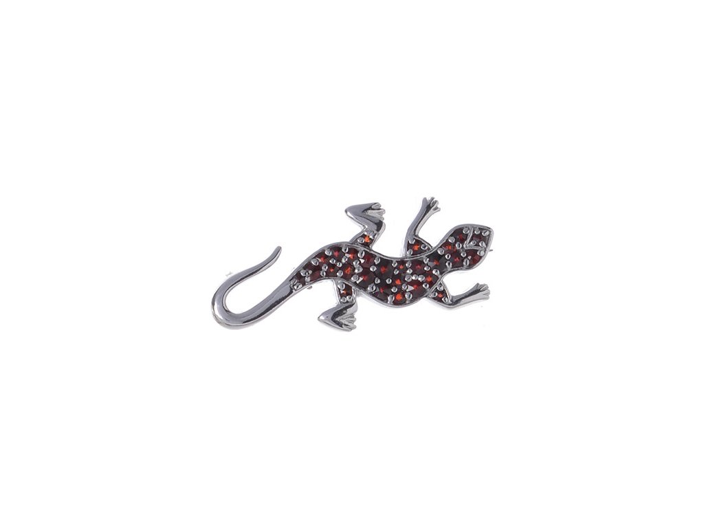 Silver brooch with czech garnet, rhodium plated, animal - gecko