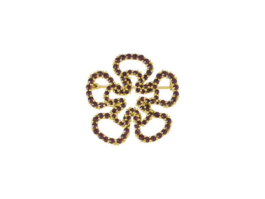 Silver brooch with czech garnet, gold plated - flower