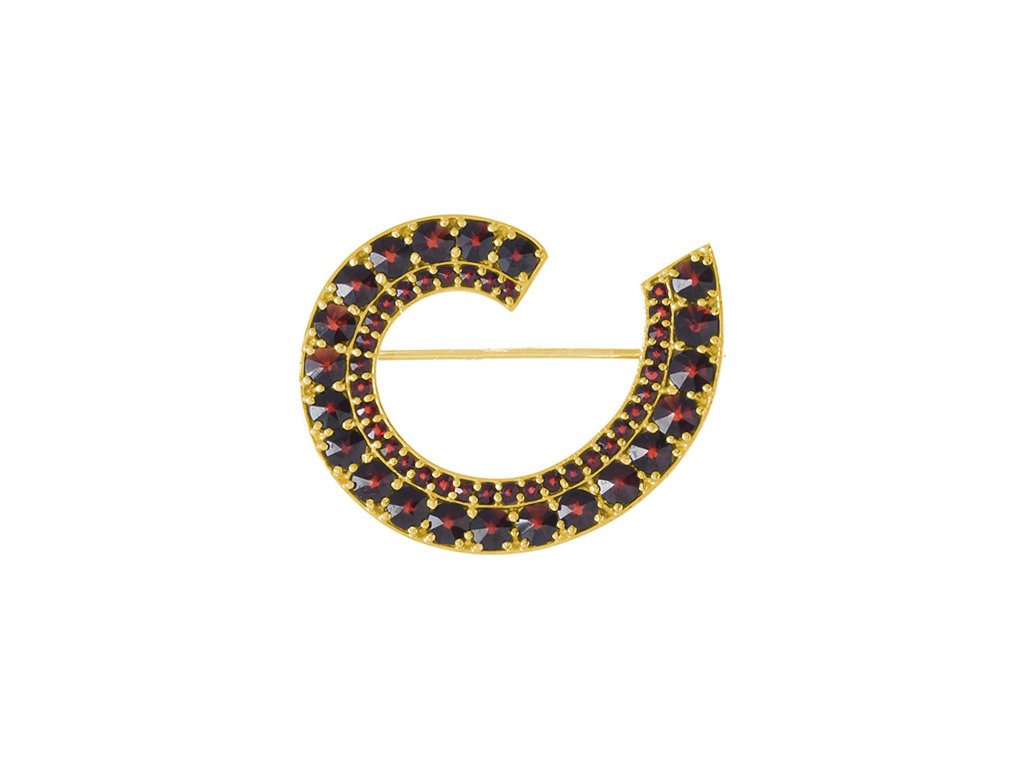 Silver brooch with czech garnet, gold plated - spiral