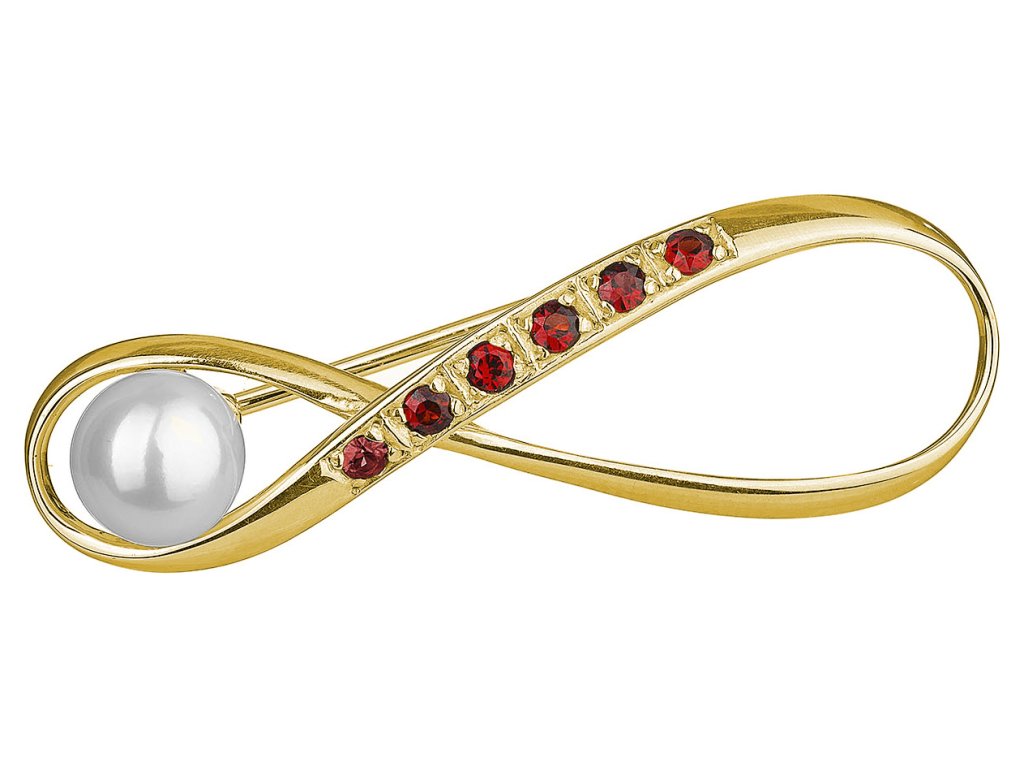 Stříbrná brož s českým granátem a perlou, zlacená - nekonečno