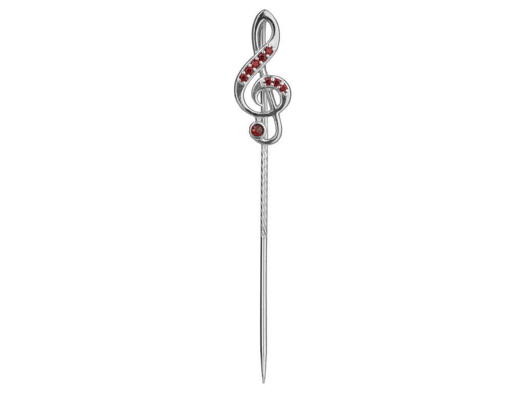 Stříbrná jehlice s českým granátem, rhodiovaná - houslový klíč