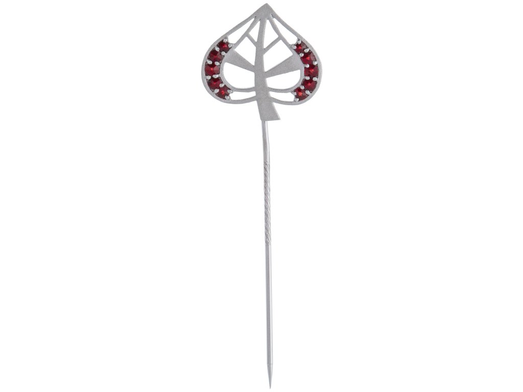 Silver needle with czech garnet, rhodium plated - linden leaf