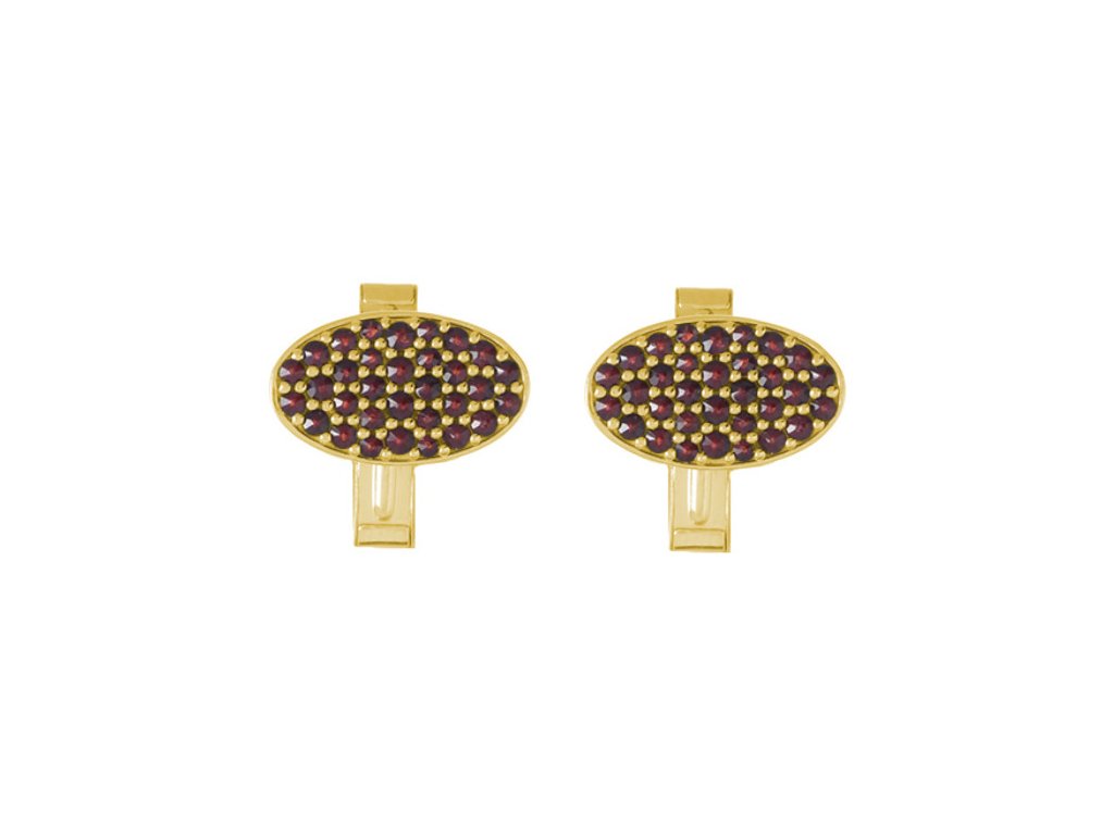 Stříbrné manžetové knoflíky s českým granátem, zlacené - ovál