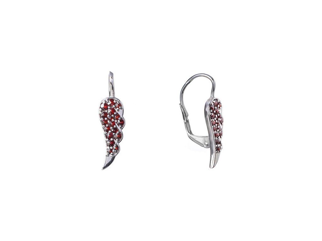Silver earrings with czech garnet, rhodium plated - wing
