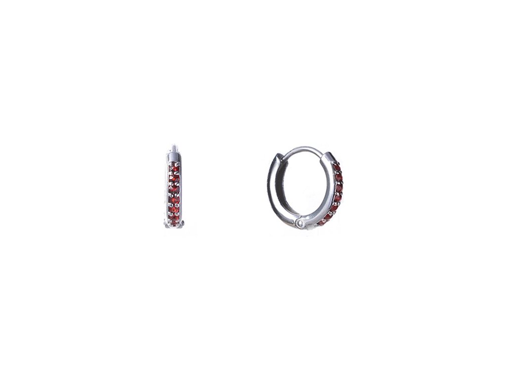 Stříbrné náušnice s českým granátem, rhodiované - kruh